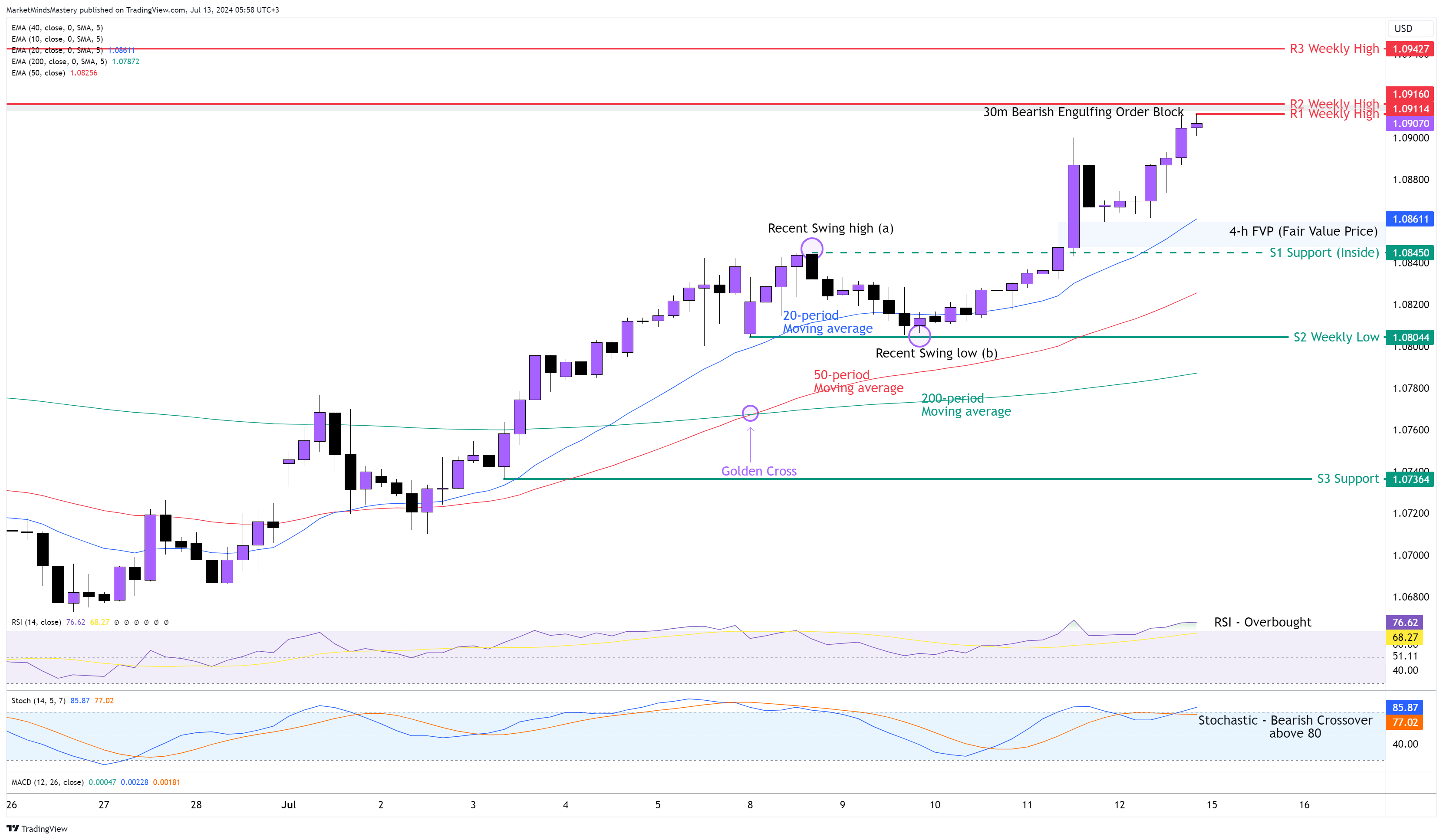 وبالإضافة إلى ذلك، كان مؤشر مؤشرRSI Oscillator في حالة ذروة شراءمنذ منتصف الأسبوع الماضي. وقد أنشأ مؤشر ستوكاستيك مؤشر ستوكاستيك تقاطعًا هبوطيًا ، وهو فوق مستوى 80، مما يشير إلى إمكانية حدوث تصحيح في السعر. ونظرًا لأن الحركة الصعودية كانت قوية الأسبوع الماضي، فقد ترك السعر الكثير من مناطق FVP (سعر القيمة العادلة);