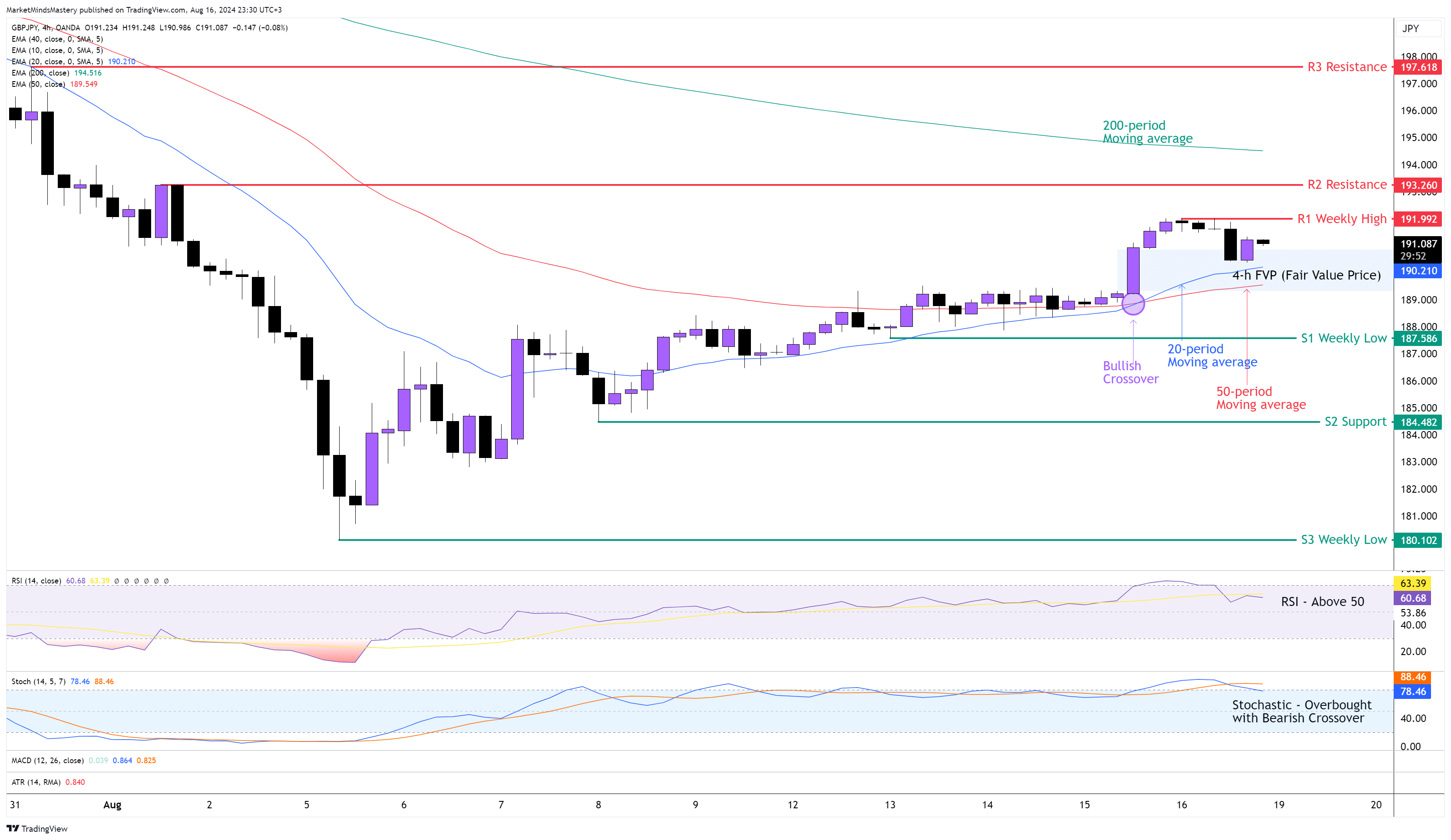 وعلى العكس من ذلك، إذا انخفض السعر وتحرك للأسفل، ستكون منطقة الدعم الأولى، S1، هي قاع الأسبوع السابق، حول 187.586. إذا اخترق السعر S1 وهبط أكثر من ذلك، فإن منطقة الدعم التالية، S2، ستكون 184.48. في حالة حدوث مزيد من الانخفاض، سيجد السعر دعم S3، وهو مستوى دعم أسبوعي قديم، حول 180.102.