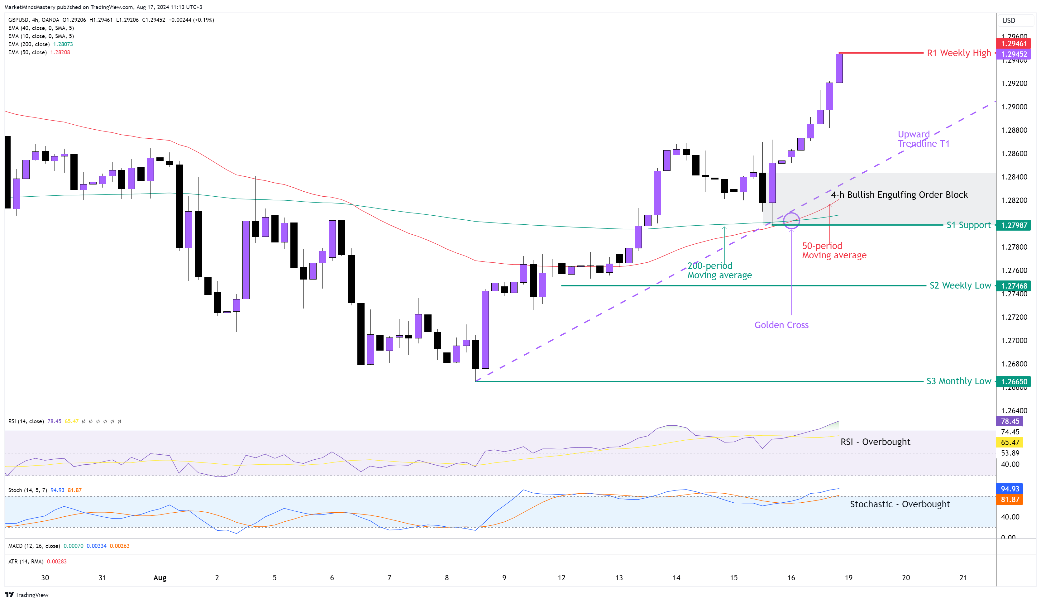 في أعقاب قوة الجنيه الإسترليني وضعف الدولار الأمريكي الأسبوع الماضي، أنهى سعر الجنيه الإسترليني مقابل الدولار الأمريكي الاتجاه الهبوطي ووصل إلى قمة جديدة يوم الثلاثاء الماضي حول 1.28700. وقد سجل الرسم البياني الأسبوعي شمعة ماروبوزو الصاعدة على الرسم البياني الأسبوعي، في حين كان الاتجاه الأساسي اتجاهًا صاعدًا. في يوم الجمعة الماضي، عبر مؤشر فوق المتوسط المتحرك لـ 200 فترة، والمعروف باسم "التقاطع الذهبي". ومنذ ذلك الحين، أنشأ السعر تشكيل قمة أعلى وقاع أعلى. يقع مؤشر القوة النسبية RSI في حالة Overbought، وهذا يشير إلى قوة السوق الصاعدة.
