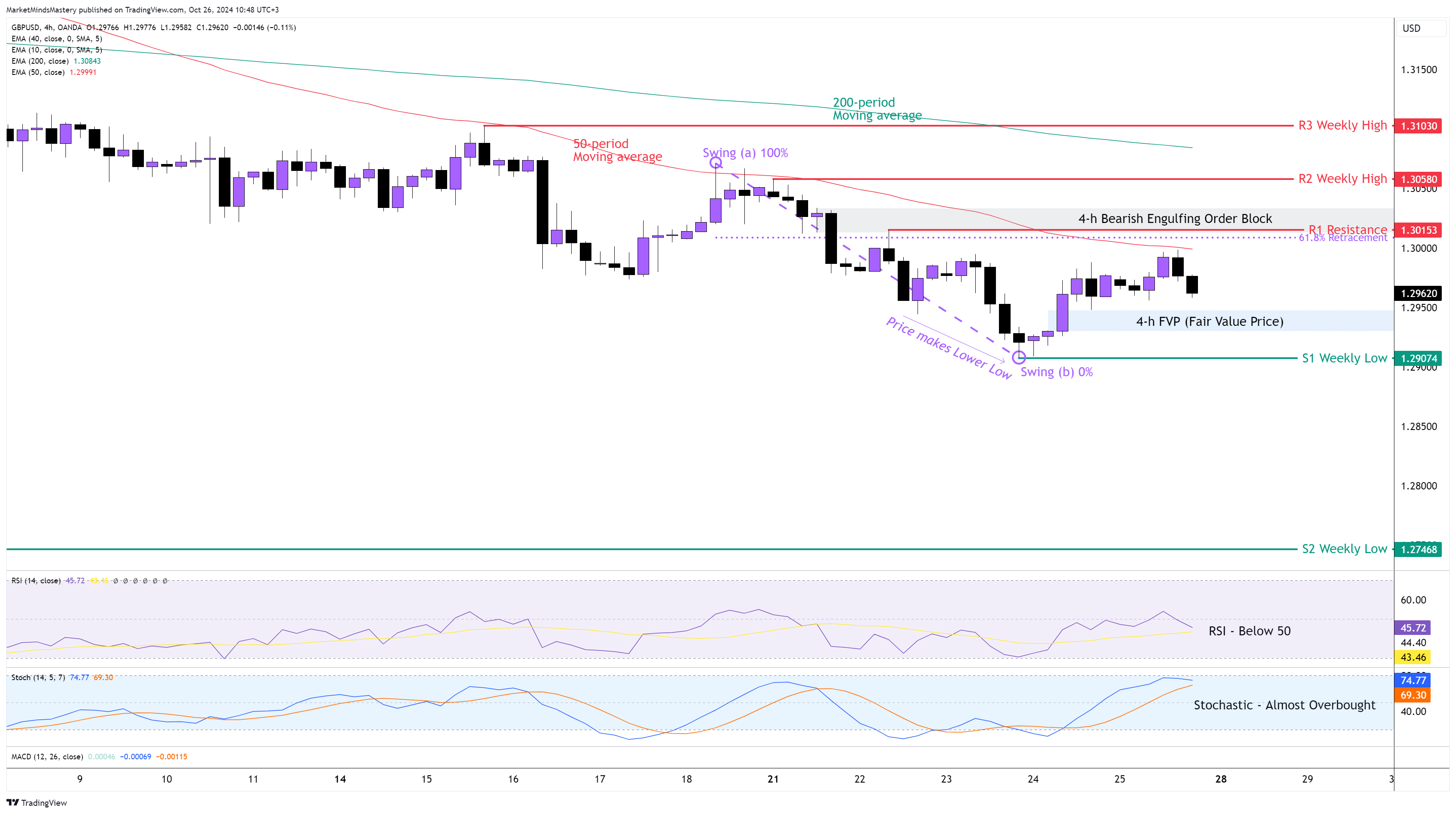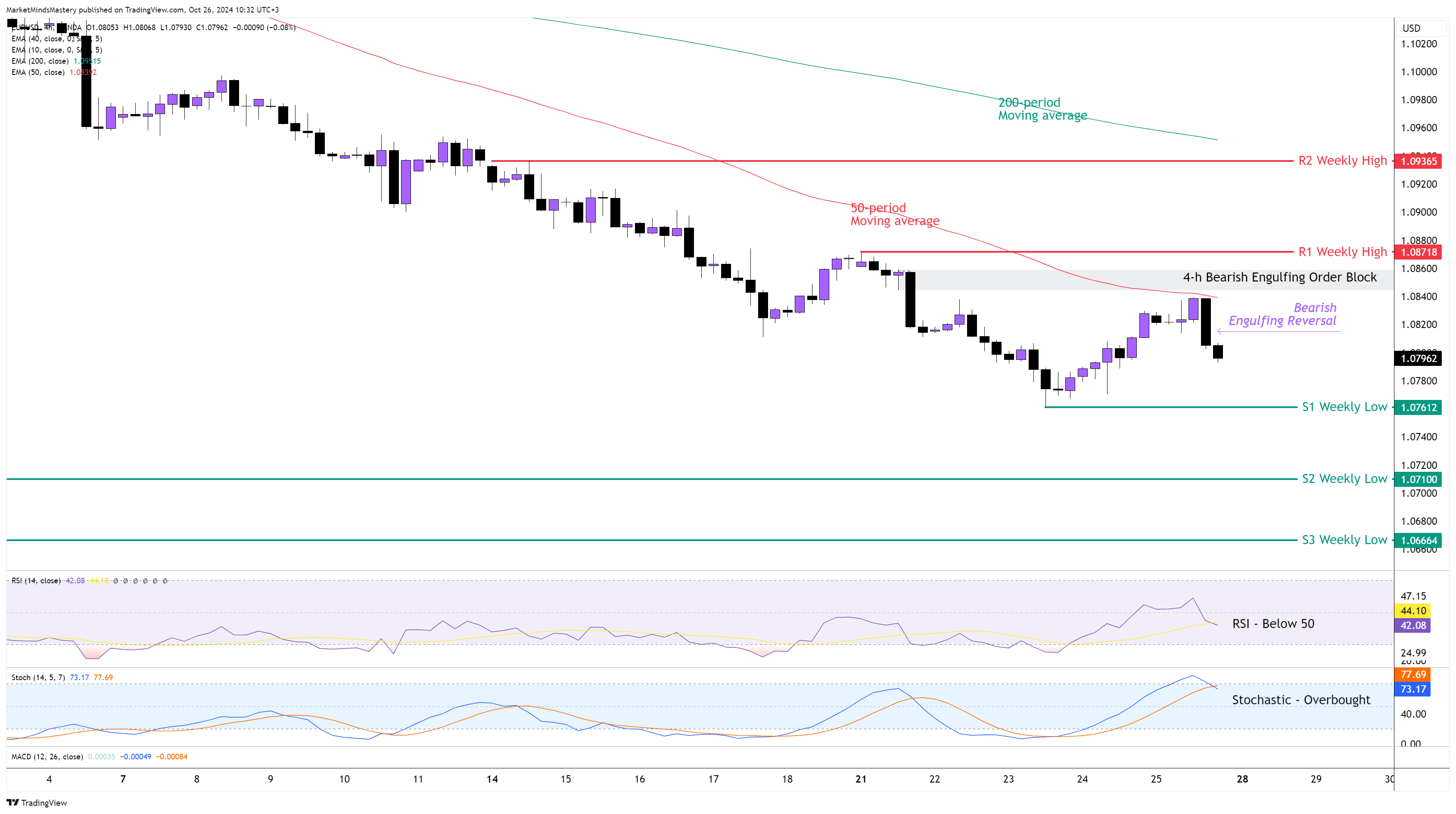 وعلى العكس من ذلك، إذا ارتد السعر وتحرك لأعلى، ستكون منطقة المقاومة الأولى، R1، عند 1.08718، وهي قمة الأسبوع السابق. وأسفل R1، توجد كتلة أوامر الابتلاع الهبوطية التي تم إنشاؤها يوم الإثنين الماضي، ويمكن أن تكون بمثابة عامل مقاومة إضافي للسعر. إذا اخترق السعر حاجز R1 واستمر في الارتفاع، فإن منطقة المقاومة التالية، R2، ستكون حول 1.09365، وهو مستوى أسبوعي أقدم.