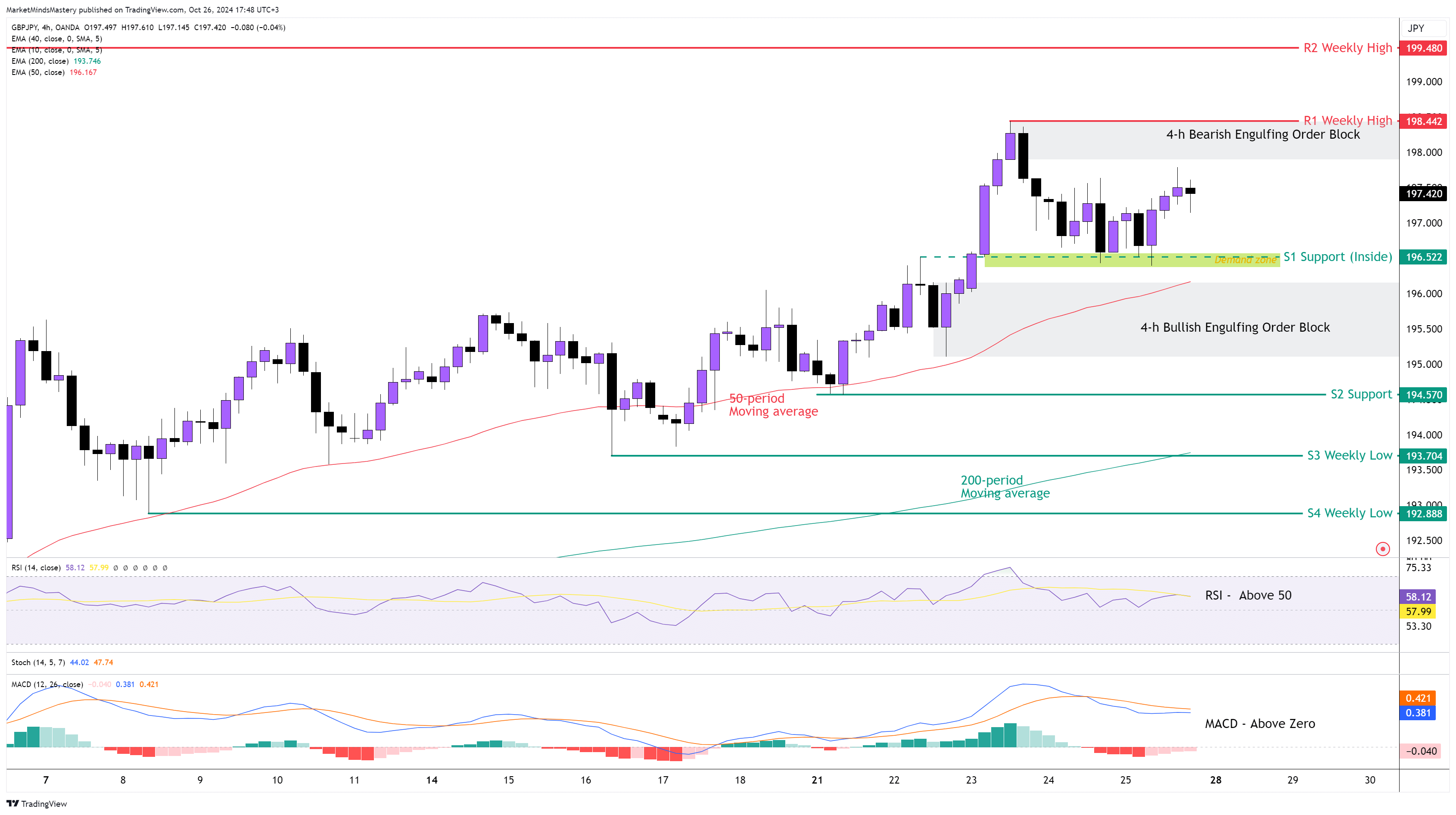 من ناحية أخرى، إذا تحرك السعر لأعلى، فستكون منطقة المقاومة الأولى، R1، عند 198.442.