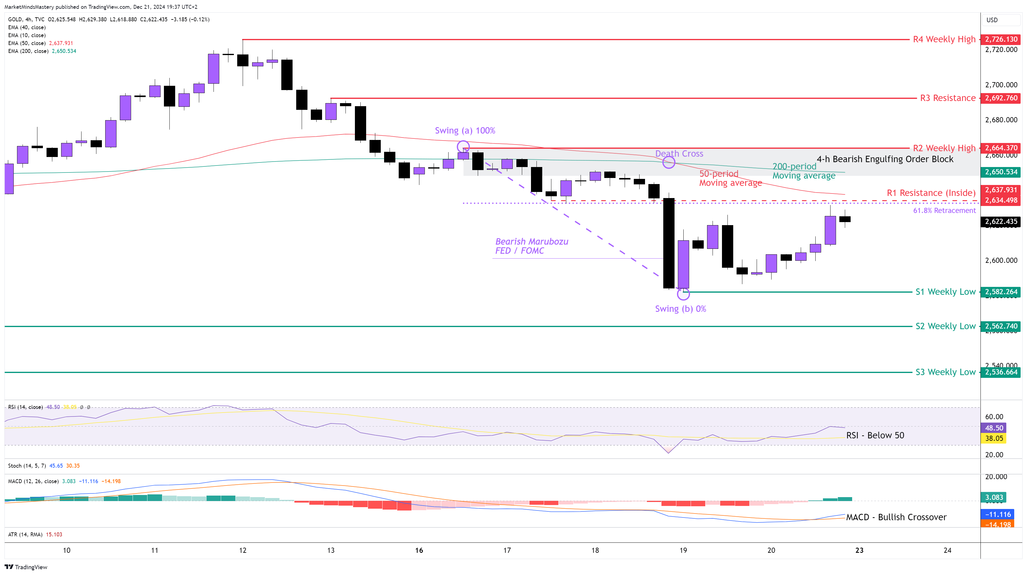 On the other hand, if the price penetrates the R1 resistance and keeps moving upwards, the next resistance area, R2, will be at $2664, the previous week’s high. This is considered a key level of resistance as it coexists with the Bearish Engulfing Order Block created last Monday, which has yet to be tested. If the price penetrates R2 and keeps increasing, the next resistance area, R3, will be at $2692.