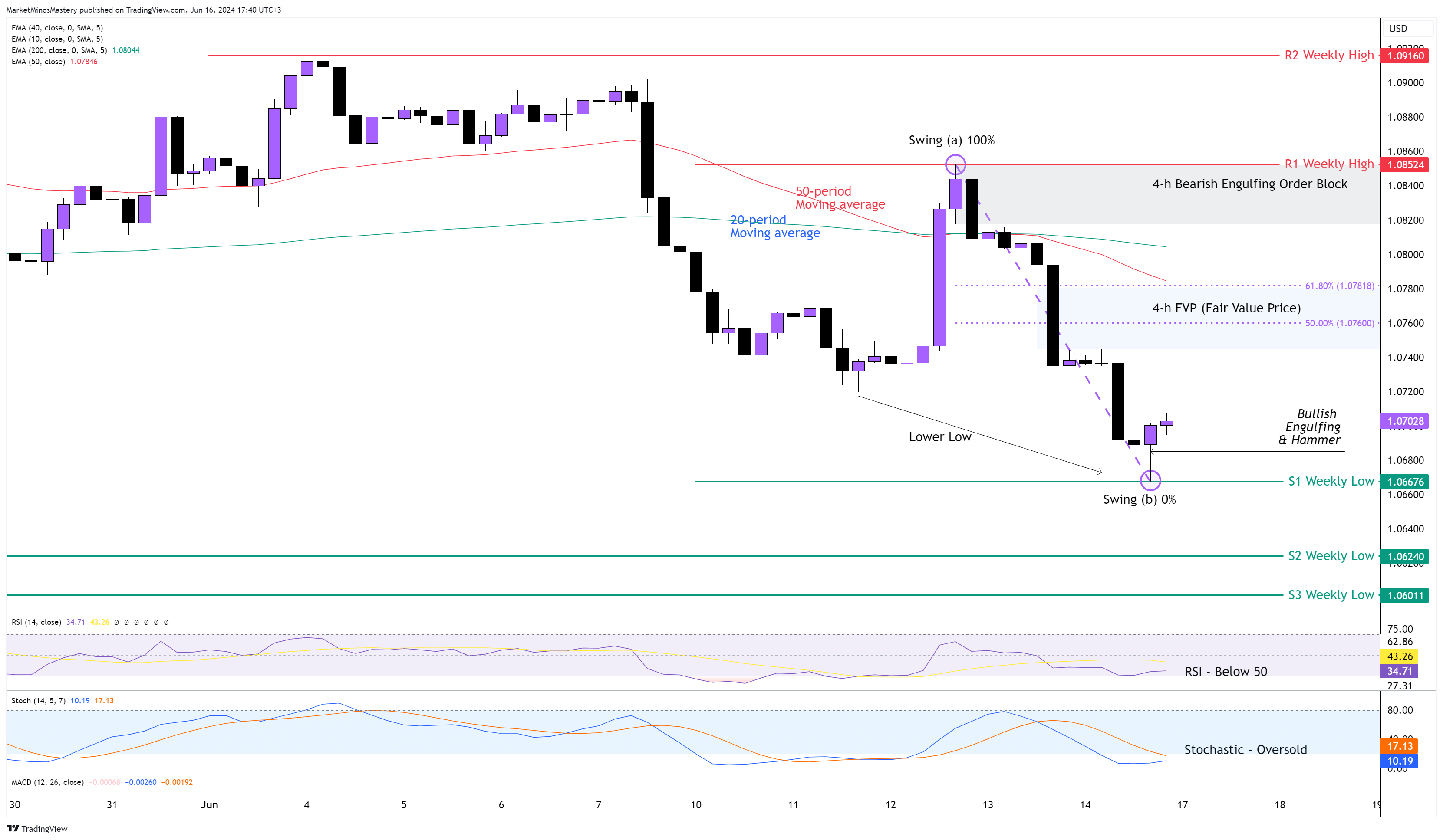 The Bearish Engulfing price action explained on the previous week’s market outlook on the weekly chart didn't follow through last week, and the price not only didn't make a lower low but also remained within the Bearish Engulfing boundaries. On the 4H chart, the price entered into the FVP area we pointed to the chart last week and rejected after the FOMC event last Wednesday.