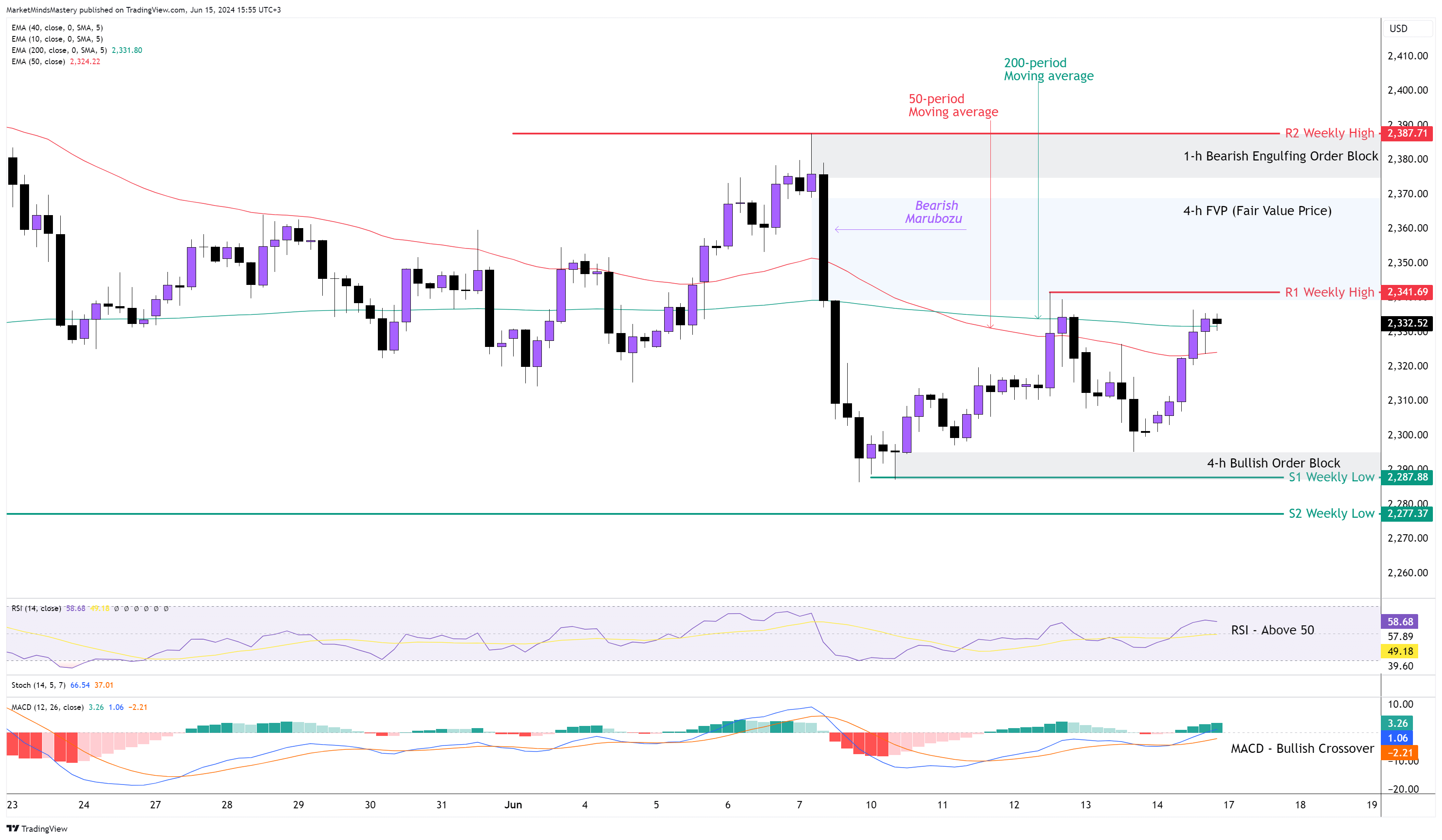 Following the previous week’s market outlook, the price on the weekly chart created a new All-Time High (ATH), with the price remaining above the 20-period moving average on the 4H chart. As per the swing analysis, the higher highs and higher lows are accompanied by convergences on the RSI Oscillator, which indicates a consistent uptrend. The 50-period is above the 200-period moving average, and this is bullish. Currently, the RSI Oscillator is above its middle line, and this has bullish implications. Last Tuesday, the price bounced off the 50-period moving average and moved upwards, creating a Bullish Order Block on the 4H chart.