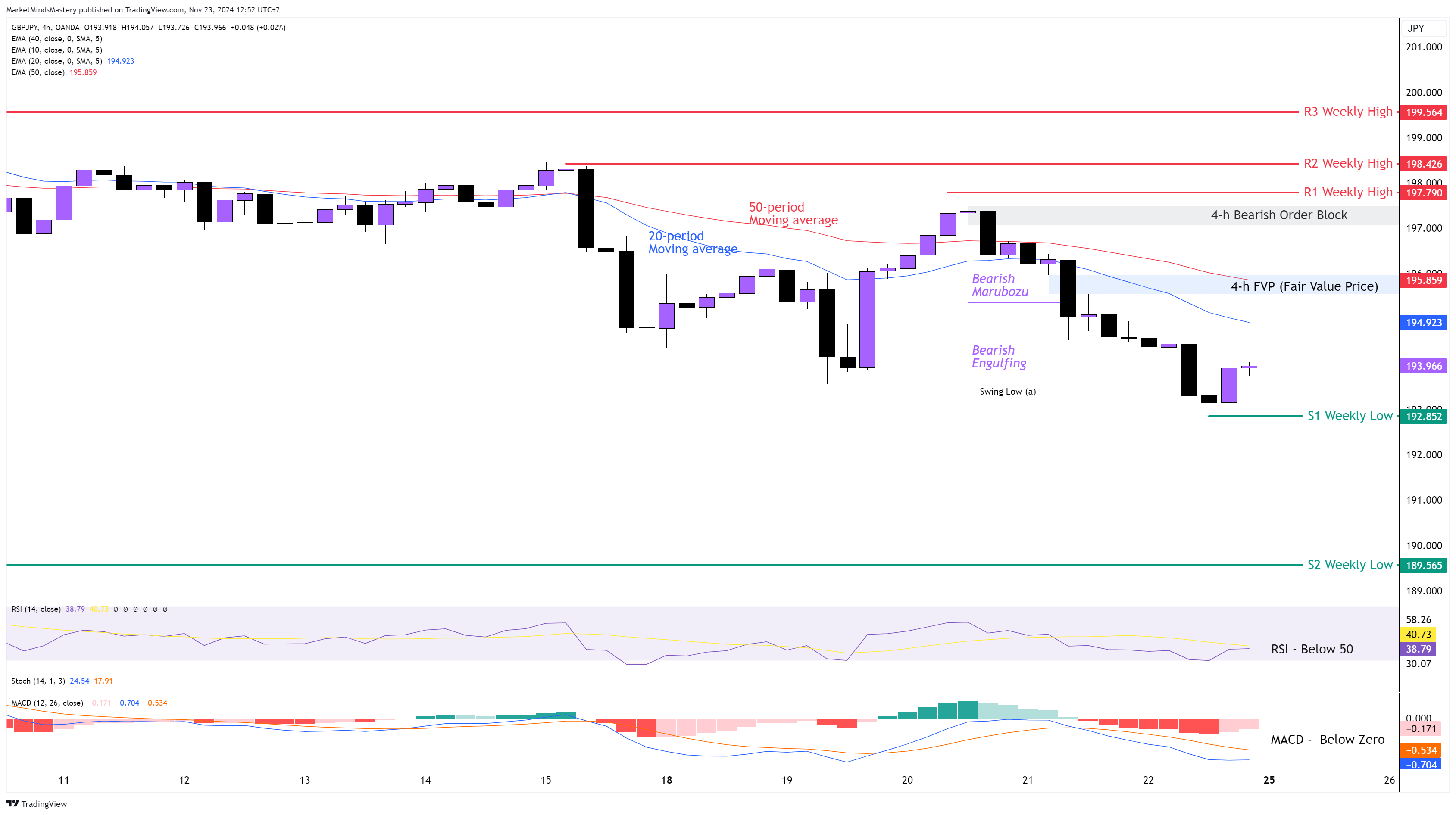 Thursday is expected to be a short day in terms of significant news events. The first event for the day will be the RBA (Reserve Bank of Australia) Governor’s speech, Bullock. Usually, we get an idea of how they see Australia’s economy. As for now, Australia hasn’t cut Interest rates, while other major banks already cut their rates, especially in case of an increase in CPI on the previous day. Moving into the London trading session, the markets are expected to trade as usual, as we won't have any significant news events that are expected to affect the volatility of any currency directly. Moving into the New York trading session, the Bank in the US will be closed due to Thanksgiving Day. Therefore, both the volatility and the liquidity of the US Dollar are expected to be minimal.